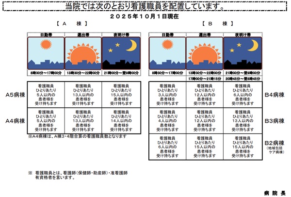 当院では、急性期一般入院料及び地域包括ケア病棟入院料を届出ており、看護職員の