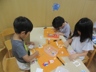何してるのかな?楽しそうだな?と眺めながらもお友だちに「上手だね。次は何色?」と話しかけたりしています。