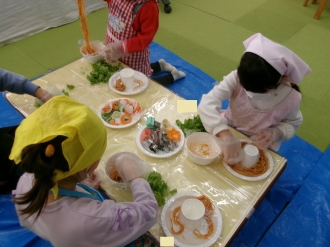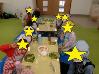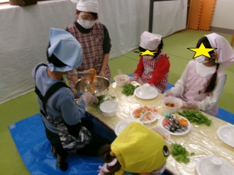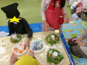 野菜を型抜きしたり、レタスを手でちぎったりしたよ。