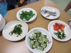 プランターで植えたきゅうりやトマトやピーマンを食べました。