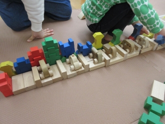 にじのおうちに人形を入れておうちごっこを楽しまれています。