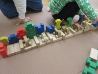 2歳児のお子さんのブームは駐車場ごっこ。お母さんが作られた駐車場に、上手に車を駐車していました。そして隣には、整備工場が。「運転手さんの方のタイヤが壊れています!」との報告に、整備士さん(お母さん)が「ここですね!見てみましょう。・・・あ!から揚げが挟まっていますね。」と。「から揚げ~!?」と大笑いでした。とても楽しい風景でした。