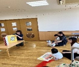 6月の親子ひろばは、2家庭の親子が参加してくれました。身体測定をした後、わらべ歌遊びを楽しみました。少しずつ、緊張がほぐれてきて大型絵本を読む時には、笑顔も見られました。そして好きな場面になると指さしをして教えてくれました。また、園の0歳児から1歳児のお友だちも一緒に「ぽんちんぱん」「これのりたいな」「サンドイッチ サンドイッチ」「たまごのあかちゃん」を見ました。親子で、ゆったりと絵本を見て楽しみました。園のお友だちと一緒に遊びませんか?お待ちしています。