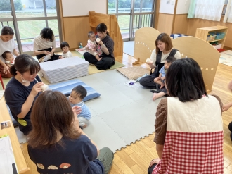 「10月のおやこひろば」は、浜松市の歯科衛生士さんをお招きして、講話や口を育む玩具を作ったりして、親子で楽しい時間を過ごしました。今回は、5家庭の親子の皆さんが参加してくれました。子どもの歯の磨き方では、お母さんが一生懸命になりすぎると顔が怖くなってしまうので、笑顔でブラッシングをすることが大切だと改めて思いました。