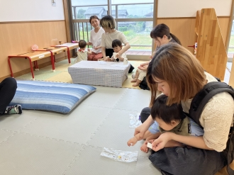 た遊びをしました。今回は、月齢の低い子どもさんが多かったのでシフォンスカーフを使ったわらべ