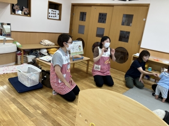 うたを中心に行いました。「にぎりぱっちり」「しんわりたんわり」「ととけっこう」「ここはとうちゃ