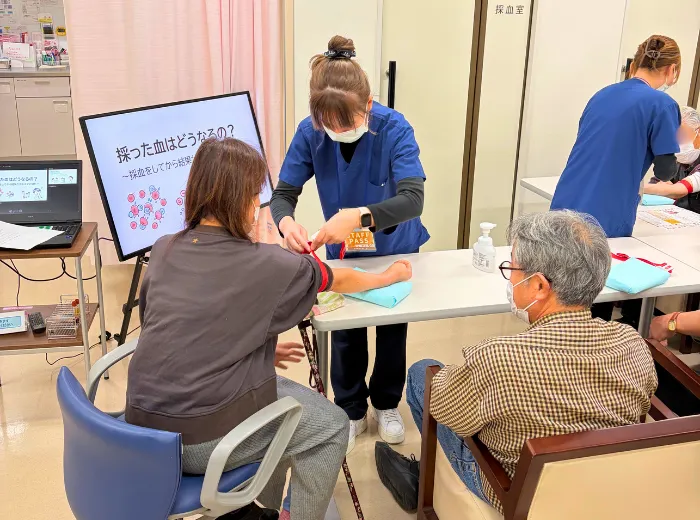 採血の流れやご自身の血管の様子を確認し、生活習慣と血管の関係について理解を深めていただきました。
