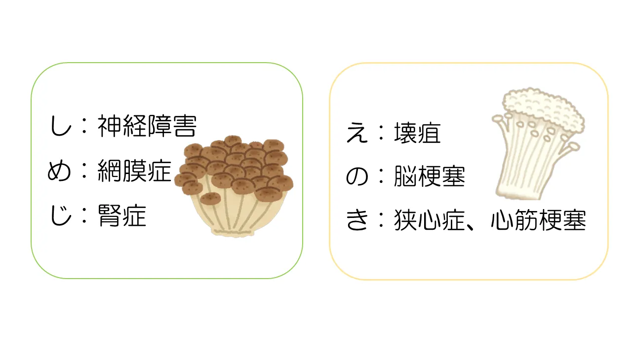 血糖値が慢性的に高い状態が続くと、体中の血管を徐々に傷つけ、神経、目、腎臓、心臓に深刻な合併症をもたらします。血糖値が改善しないと、以下の合併症を引き起こします。