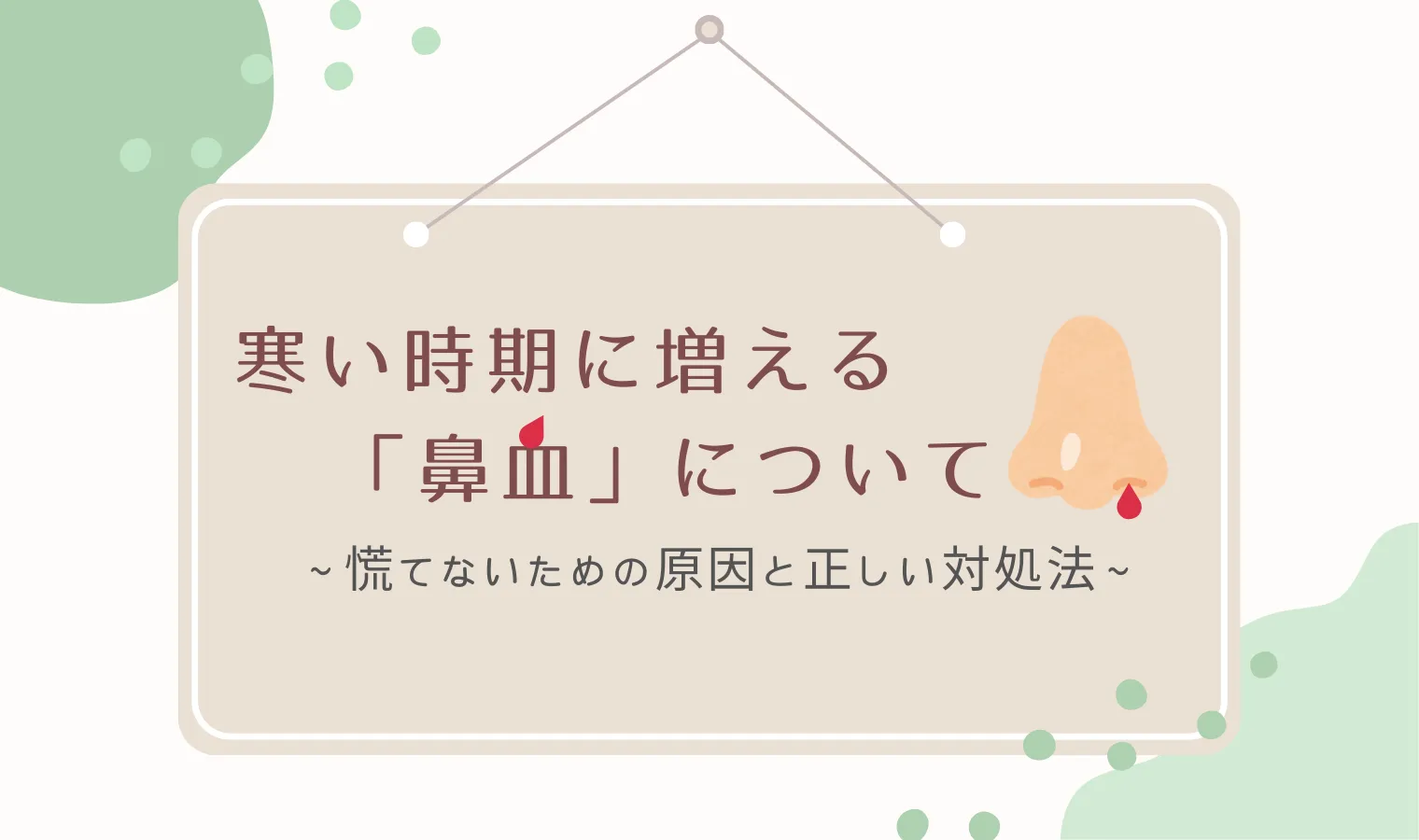寒さと乾燥を感じる日が増えてきましたが、この時期に起こりやすい疾患が「鼻血」です。今回は寒い時期に鼻血が起こりやすい理由と、いざという時の対処法についてご紹介します。