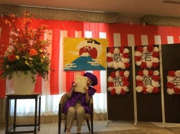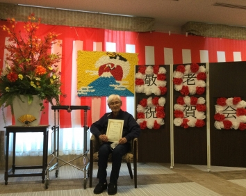 園長の温かい挨拶に続き、賀寿を迎えられた皆さまの表彰を行いました。