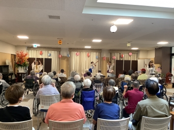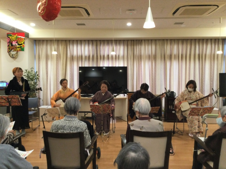 演奏後、ご入居者の皆さんは「私も昔は三味線の教室に通っていたの」と笑顔で話し、昔のことを懐かしむ方もおられました。