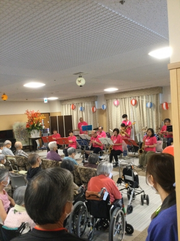 演奏された「さんさ時雨」、「黒田節」、「バラが咲いた」などの名曲が響く中、ご入居者の皆さんは自然と表情を和らげ、懐かしそうに口ずさんでいました。