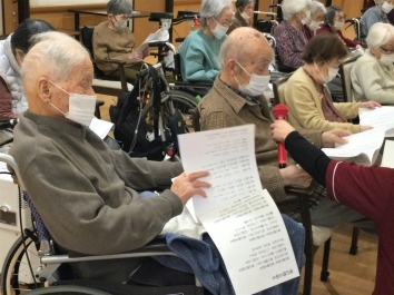 ご入居者も一緒に歌われ、午後の楽しいひとときとなりました。