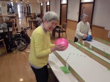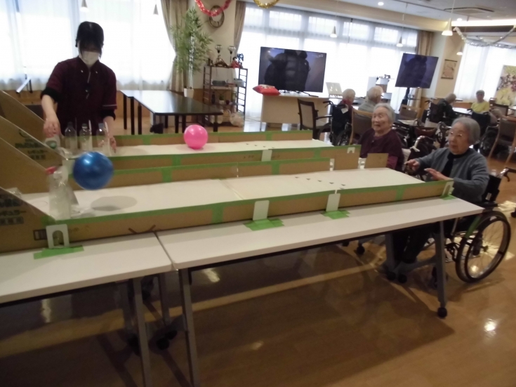 だるまころがしやお年玉入れ、かるたなどのゲームを行い、利用者から楽しかったと感想をいただきました。