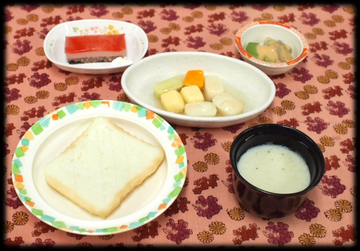 らくらく食パン・チキンポトフ・オーロラサラダ・ポタージュスープ・苺のムースケーキ