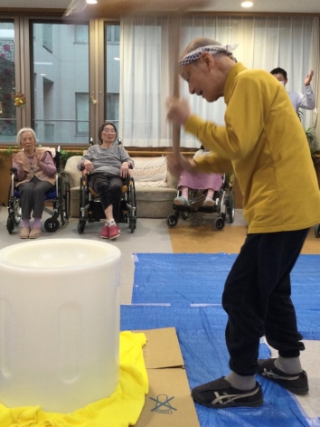 ご入居者と職員が一緒になって杵を振るい、掛け声や手拍子につつまれ盛り上がりました。