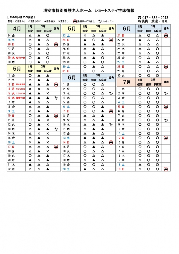 ホーム  > お知らせ  > ショートステイの空き情報を更新しました(4月23日現在)