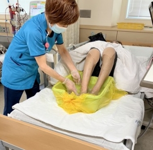 看護補助者による足浴、及び保湿を行っています。