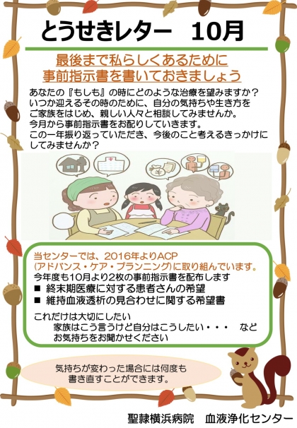 - 透析レター:センターからのお知らせや最新情報を発行(過去分も閲覧可能です)