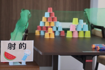 催し物は射的、ストラックアウト、金魚釣りなどゲームを行いました。