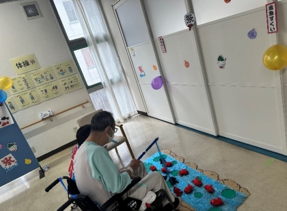 回復期リハビリテーション病棟では、毎月1回季節に合わせたレクリエーションを開催しています。8月15日に夏祭りを行い、病棟主催で開催するのは初めてでした。