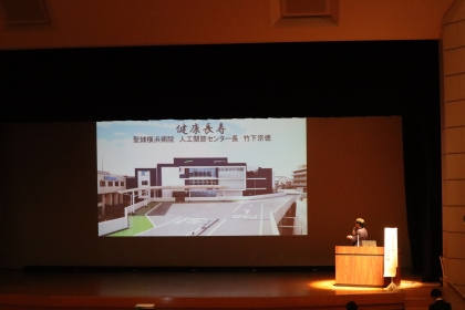 2024年9月14日(土) 保土ケ谷区消防署主催「疾病予防・救急医療」講演会に参加をし、骨折予防の重要性や対策をテーマに「健康寿命~骨折予防を含めて~」と題し、関節外科部長の竹下医師が講演を行いました。