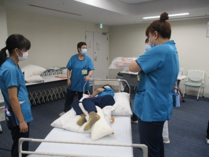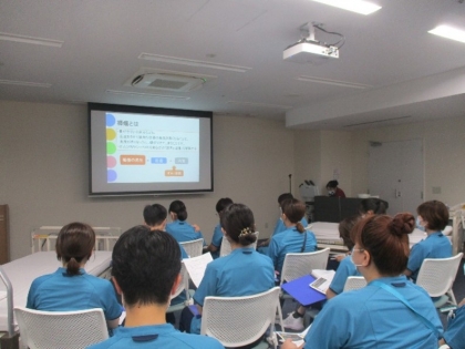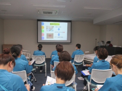 毎年、看護部褥瘡予防委員会にて、看護補助者を対象に褥瘡予防対策の研修を開催しています。
