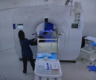 プロテクターを設置している場面(CT室)