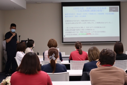 今回も「実症例から学ぶ心不全療養」という演目で、医師、病院看護師や訪問看護師、リハビリスタッフや栄養士、薬剤師など多職種で関わった実症例をカンファレンス形式でどのように介入したのか、どのように他職種に繋げたのかを振り返りました。