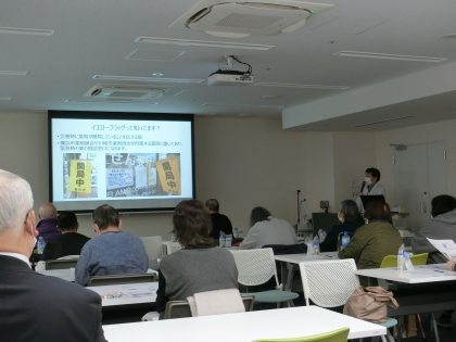 後半、薬剤師の講義では災害に備えた薬のストックのしかたや災害時も薬局が開局している目印の“イエローフラッグ”の存在を知ることができました。